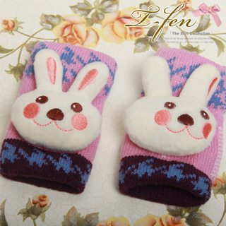 【T-FEN】微笑兔露趾保暖手套(二色 粉紫/湖水綠 )