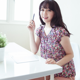 momo,momo購物台,momo購物網>【花田小鹿】上衣-亮色系碎花鬆緊上衣(桃紫)