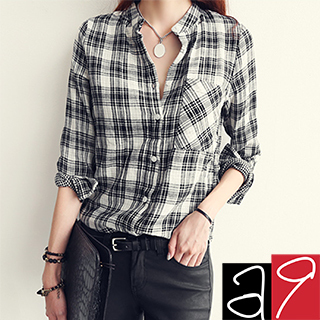 【預購a.9】格紋反褶袖棉質襯衫(共二色)