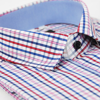推薦momo流行服飾【金安德森】藍紅粉格紋純棉窄版長袖襯衫