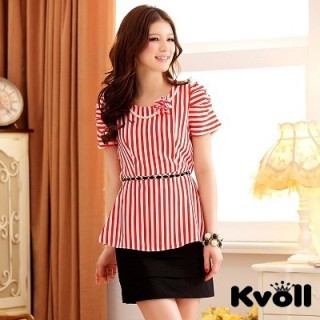 【KVOLL中大尺碼】紅色OL最愛經典條紋+項鍊+皮帶短袖假二件式連衣裙網路上部落客的評價可以參考 相關介紹一並整理提供參考:下面是整理的資料;