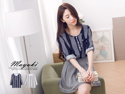 momo,momo購物台,momo購物網>【MAYUKI】直條紋假口袋半開襟上衣-S.M ★★★