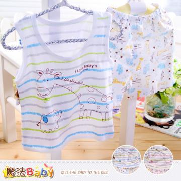 居家套裝 純棉背心&短褲套裝居家服睡衣 藍 粉 魔法Baby k35551