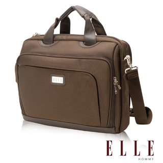 【ELLEHOMME】尊貴高雅公事包13吋筆電-大款 手提側背兩用包(咖啡EL84253-45)