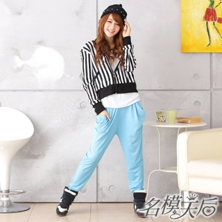 momo,momo購物台,momo購物網>【名模天后中大碼】時尚造型素色哈倫長褲(水藍)