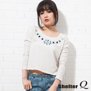 【Shelter Q】立體寶石圓領造型上衣(白)那裡買