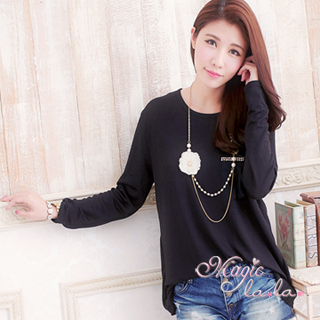 口袋後開釦假兩件上衣-Magic la.la.(輕柔黑)A285