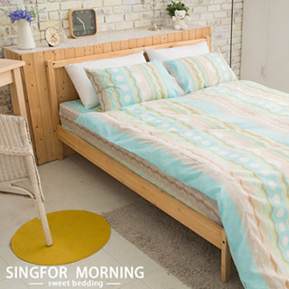 momo購物台,momo購物網:【幸福晨光】《幸福夢田-藍》抗菌柔護三件式床包被套組(單人)