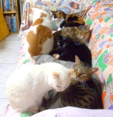 天冷了,貓咪都窩在我最愛的那張IKEA沙發上睡覺,為了防貓咪亂抓,媽媽把舊床單全鋪在沙發上。 這張沙發是我躺著看電視的專用椅子呢!可是,我搶不到! 數數看,有幾隻貓? 我的貓全都結紮了。 ...
