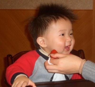 昇昇喜歡吸梅汁小番茄的酸甜味. 長牙之後更可愛了!