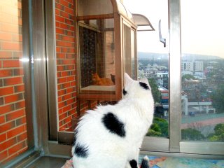 Raccoon望向窗外,看見隔壁凸窗裡面有熊熊和Noli.是呀!的確是熊熊和Npli在日光浴.原來是另一個房間的凸窗,從客廳看過去而已,我很喜歡在這邊和貓咪打招呼,牠們覺得很奇怪,因為能聽見我的聲音,...