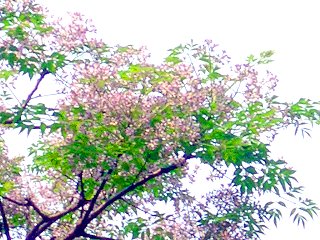 住家附近的苦楝樹盛開著紫色小花. 配上幽幽的花香,美極了!早上外出看見這景象,隨手拍了下來.在網路上找到花和葉的近照給友友看,樹實在高,我拍不到花.以上兩張招照片取自: http://mail.y...