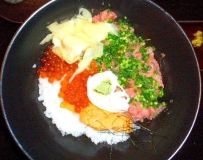 家人到三井吃飯.真是好吃啊!高貴不貴,七個人,掏出七千塊有找!這是我吃的鮭魚子海膽油鮪蓋飯,700元. Jen吃蔥花油鮪蓋飯. 超好吃軟殼蟹. 登雅吃的組合握壽司. 甜蝦,有夠新鮮好吃!吃完蝦頭拿...