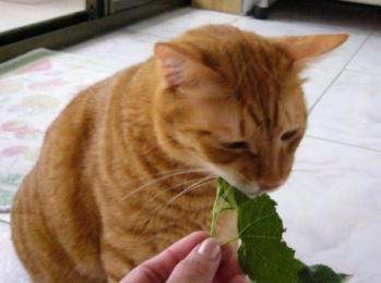 熊熊好喜歡吃桑葉喔!我一片又一片的拿著餵牠吃,牠就一片又一片的大口嚼著桑葉。好像一隻超大變形蠶寶寶喔! 我想熊熊吐絲結繭的時候,一定是吐黃絲!嘿嘿!我家有貓蠶! ※附圖為熊熊愉快的吃著...