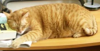 逸蝶的書桌是滿亂的,不過,不至於亂成這樣喔! 這是灰虎斑貓乖乖和折耳貓小白兔的傑作! 牠們努力的弄亂媽咪的書桌,好舒舒服服的睡午覺! ※附圖為乖乖和小白兔,逸蝶攝於2005/5/29。逃跑貓躲在...