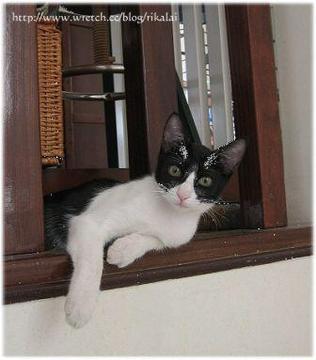 看來表情有點無奈!美咪在陽台外面,這些年來...