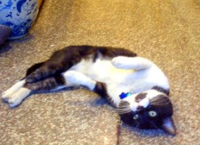 在一家陶瓷店門口遇見這隻貓,牠被細細的鍊子綁在店門口,鍊...