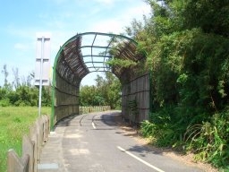 這是一條小小的鄉下路 我的美麗祕境 竹搭遮篷通道有連續三個 是一條腳踏車專用道 神秘而美麗
