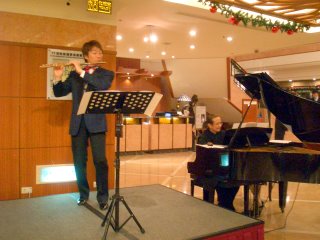 晚上公司西餐廳有長笛之夜,聘請日本長笛大師板橋矢波教授與日本創造學院大學木管五重奏野平龍一教授鋼琴伴奏。
