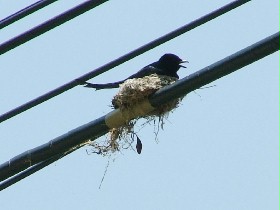台南縣麻豆鎮安東里的電纜線最近出現烏秋築巢,好占地盤的一對烏秋,為了護蛋及鳥巢,會毫不客氣地攻擊路人,惹得居民向民意代表投訴,希望縣府相關單位好好「管鳥」。