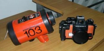 我最心愛的潛水相機, Nikonos-V,配上Nikonos SB103閃光燈。