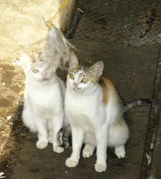 先前我拍了幾張照片,都只拍到小白和貓媽媽,今天小花第一次登臺喔!