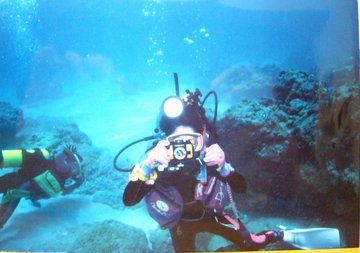這一張是朋友跟逸蝶互拍,當時水深不到20米,光線極佳!