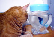 寶貝搬回家,把他養的鬥魚放在床頭,這隻鬥魚是他在夜市花十塊錢抽到的.
