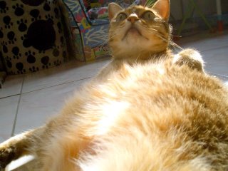 正在日光浴,太陽從窗外照射進來,Lulu很舒服.