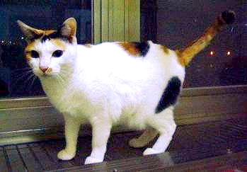 有一天路過街上一家麵包店,店門前放著一籠小貓,籠外掛著"可愛家貓贈養"字樣,我看見美咪,美咪也看見了我。