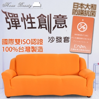 【HomeBeauty】日本防蹣抗菌彈性沙發套(三人座-明亮橘)