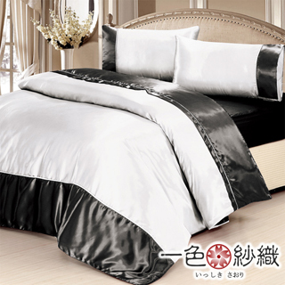 【一色紗織】彩妍。雙人糖瓷絲緞被套床包組(黑白)