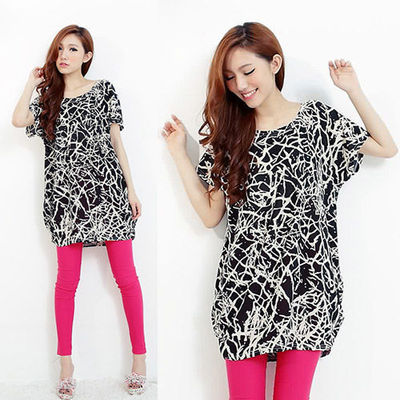 【韓國K.W. 】(現貨+預購)N631高雅迷情.黑白情境短袖長版衣評比,
