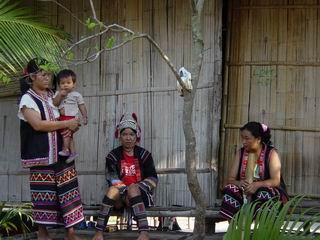 「金三角風情」自然也是供遊客參觀的地方,除了崗哨、軍械室、野戰醫院乃至於忠烈祠這些做出來就是「供參觀」的,帶著濃厚「游擊隊」軍事味道的建物之外,其實大部分的草盧就是裡面居民的住所,引導解說的先生說,他們迄今沒有獲得泰國的身分證,所以是以「難民」的身分被限制居住在這裡的,其實大部分的「泰北同胞」仍被限制在金三角地區,這些華人沒有任何國籍,得靠自己自力更生。區內有一個展覽室,貼著許多當年「反共救國軍」訓練及居住的照片,那些昏黃的黑白照片裏呈現了一堆陌生的華人臉孔及簡陋的衣著房舍,也有來自於台灣救援物資發放的畫面,繽紛的張揚著青天白日滿地紅的旗幟,讓我們這些其實一開始根本沒記得他們的觀光客有些奇怪的不好意思感覺。