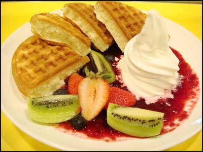 霜淇淋,鬆餅沾上莓果醬,吃出微酸甜的愛
