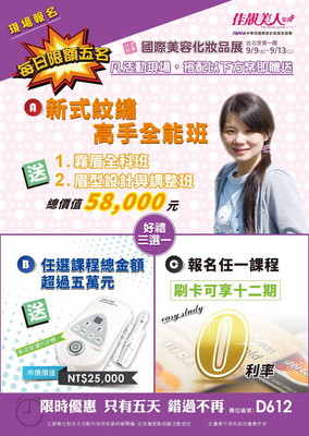 這是我們這次美容展的特別優惠歐!台北/板橋/府中/新式紋繡/紋繡教學/紋繡檢定/教學/證照/推薦/評價