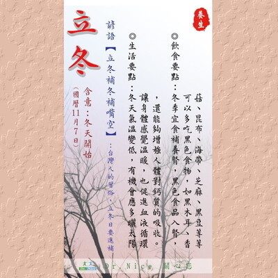 11/7 是二十四節氣之立冬,代表冬季正式開始。