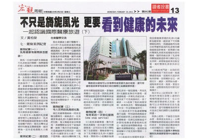 不只是旖旎風光 更要看到健康的未來-- 一起認識國際醫療旅遊(下)