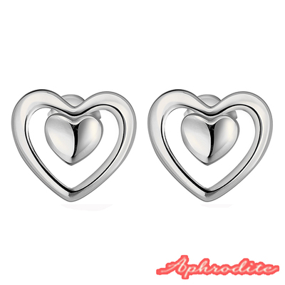 最新 最便宜【Aphrodite愛芙晶鑽】浪漫愛心造型18K耳環(白金色)