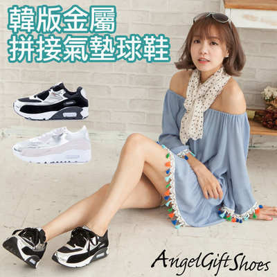 【AngelGift】復古休閒金屬拼接氣墊運動鞋(銀系-黑系) 討論,推薦,開箱,CP值,熱賣,團購,便宜,優惠,介紹,排行,精選,特價,周年慶,體驗,限時