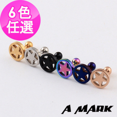 活動【A MARK】縷空圈圈五角星造型316L鈦鋼耳環(單只)