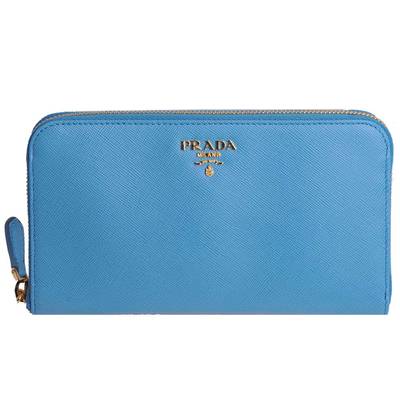 PRADA SAFFIANO 經典LOGO 防刮皮革拉鍊發財夾(亮藍)