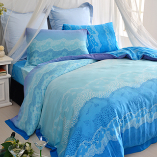 【義大利La Belle】《藍彩魅惑》加大天絲八件式兩用被床罩組