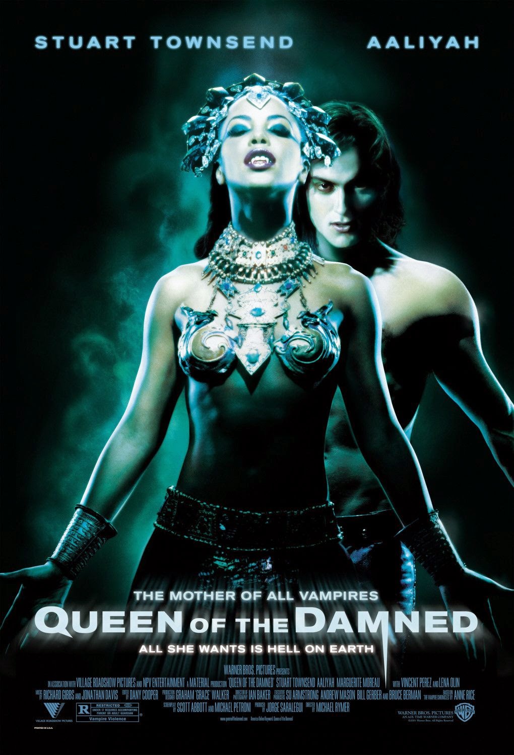 相關電影就是跳過了小說第二集,而在2002年直接將第三集<天譴者的女王>改編成<魔咒女王>(The Queen Of The Damned)上映,導演、演員全都由不同人擔綱,因此並非續集電影,而是想用小說裡的重頭戲來吸引觀眾,也就是吸血鬼大戰。(上圖是<魔咒女王>劇照,前為女王,後面是黎斯特,都看起來很弱)
