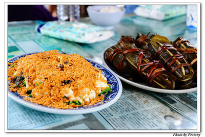 山野風味餐上場囉!....這樣好像是野薑花葉包油蔥碎肉,記不得清楚了,不過口感還不賴~