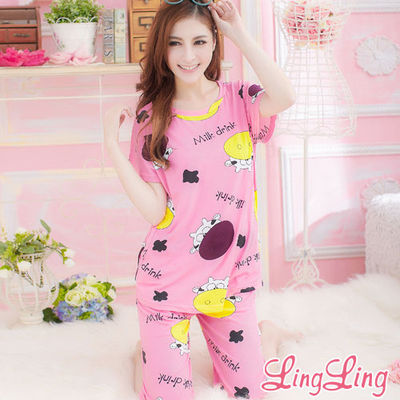 lingling日系 全尺碼-可愛繽紛乳牛二件式睡衣組(繽紛粉)A158激安4-02 的產品介紹在下面,