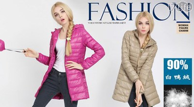 品名:輕薄型長版連帽羽絨外套