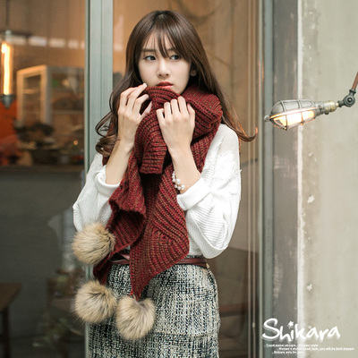 0121新品 可愛主張~雙色微鏤空設計針織毛球球圍巾.3色 的產品介紹在下面〈(__)〉