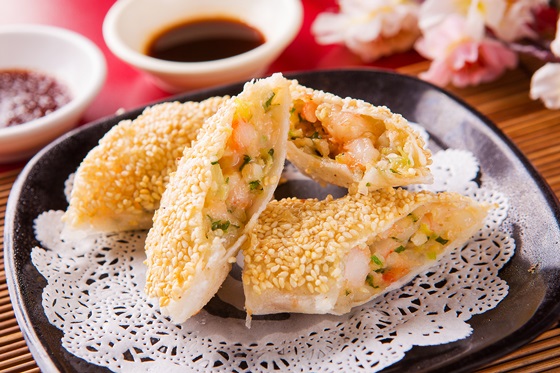 紮實的餡料,大方用料看得見。充滿點點粉紅色的蝦肉,可想而知那內餡是多麼甜美,外層的芝麻提升了整體的香氣,口慾滿足度極佳!