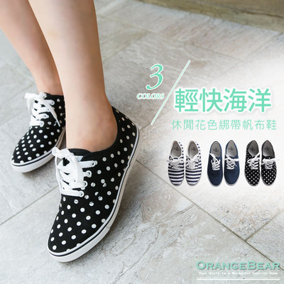 0819新品 輕快海洋~圓點/條紋/素面休閒綁帶帆布鞋.3色